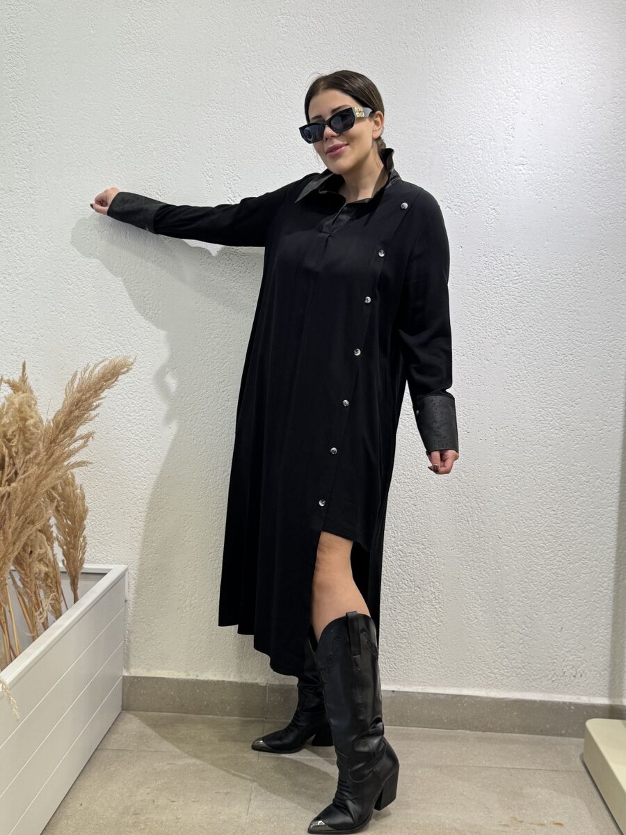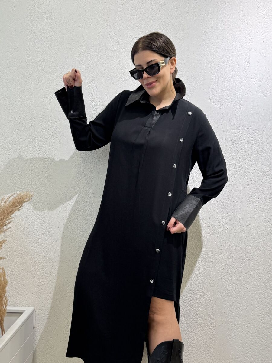 GÖMLEK YAKA DÜĞME DETAY ELBİSE