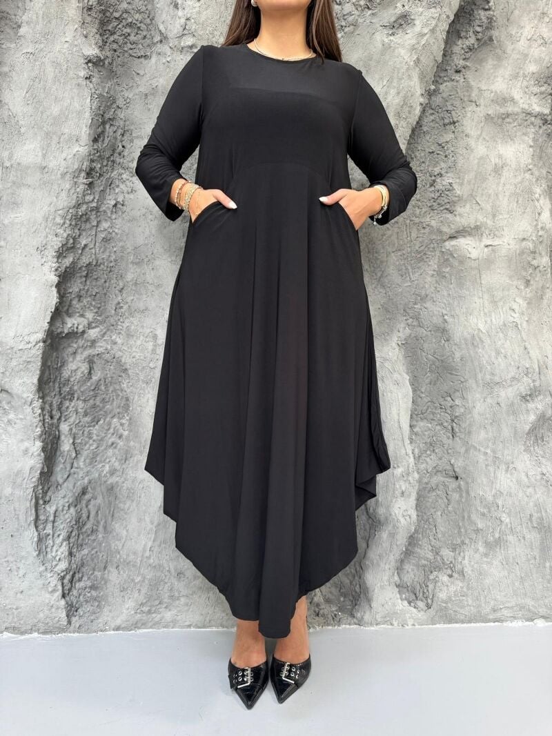 İKİ CEPLİ SANDY DÜZ ELBİSE