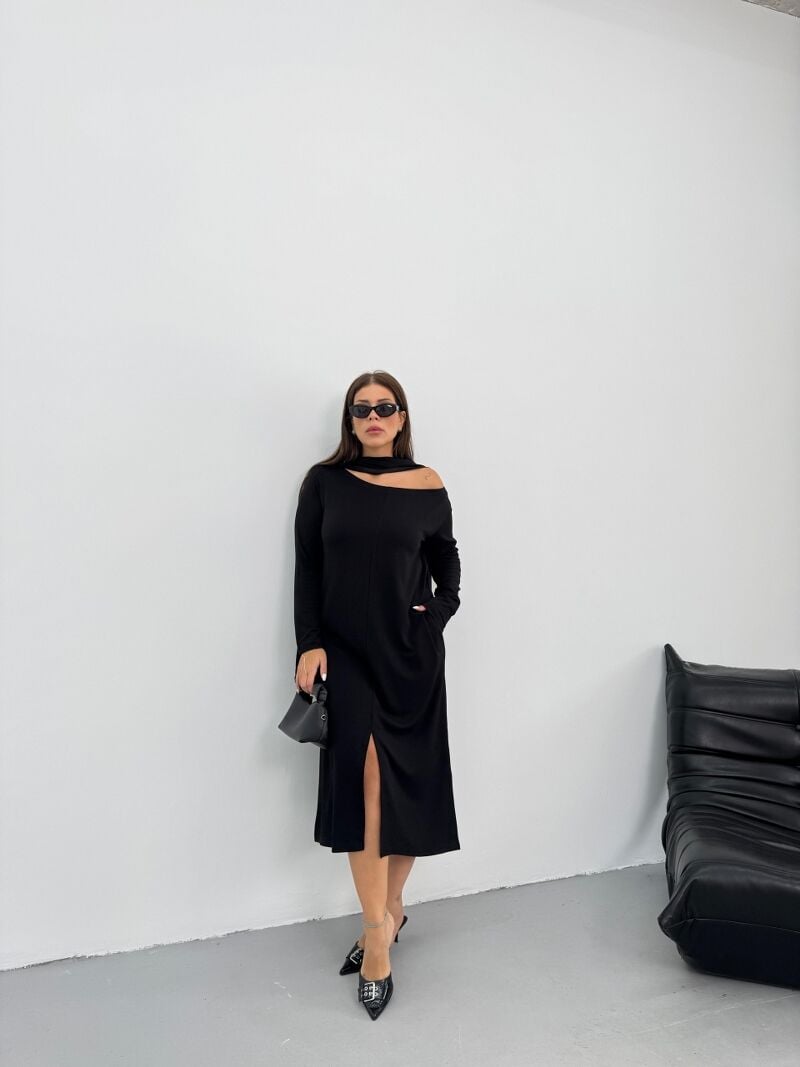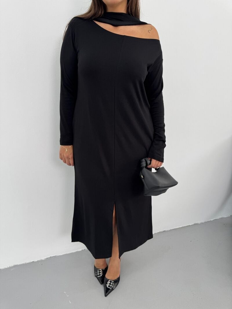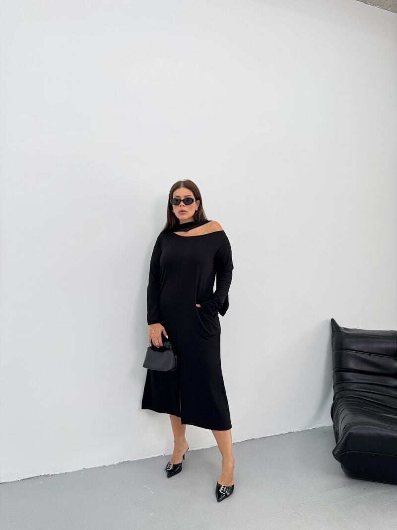 MODAL ŞAL DETAYLI UZUN ELBİSE
