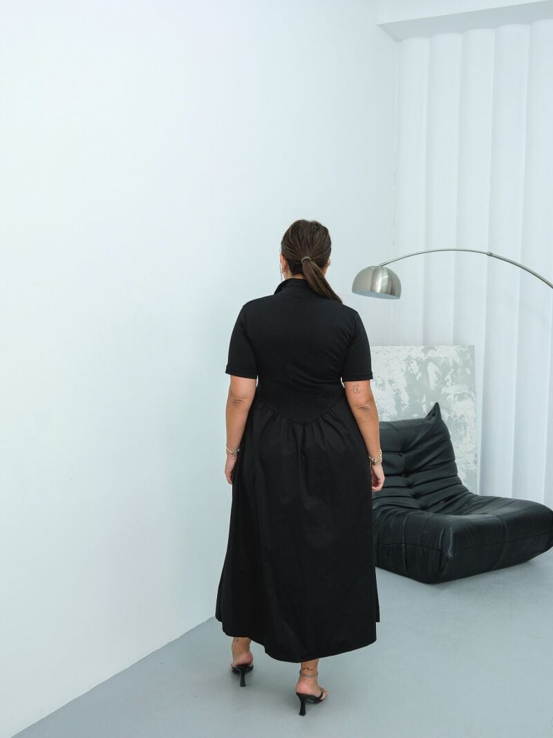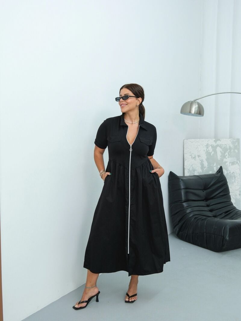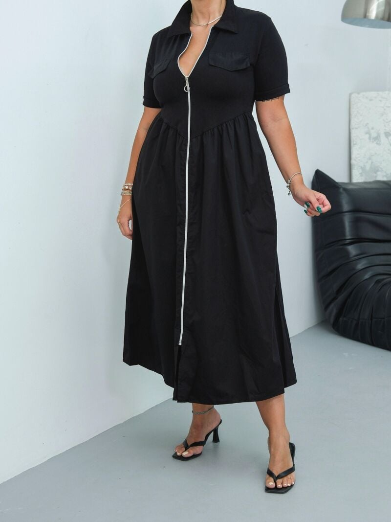 YAKALI ÖNDEN FERMUARLI ELBİSE